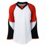 1. Jersey: Ice hockey jerseys are typically made of durable, moisture-wicking fabric to keep players dry and comfortable during gameplay. They often feature the team’s colors, logos, and player numbers prominently displayed on the front and back.